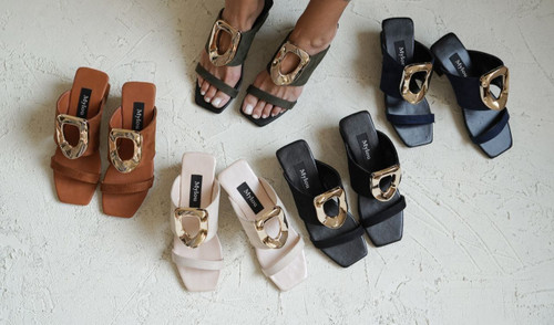 کفش پاشنه بلند پشت باز پاشنه طلایی