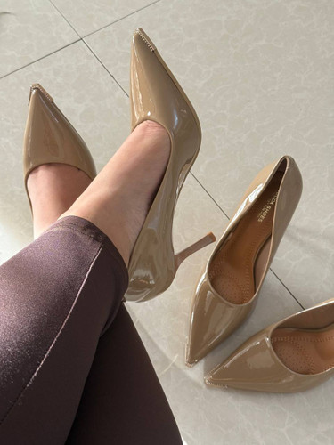 کفش پاشنه بلند استتلو کرمی ورنی