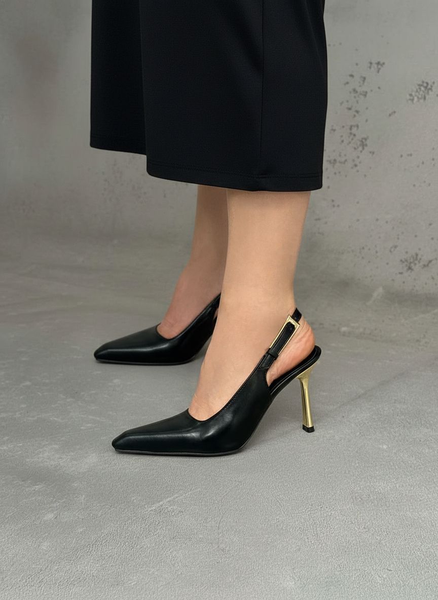کفش پاشنه بلند پشت باز پاشنه طلایی