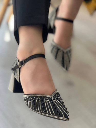 کفش مجلسی عروسکی پاپشوندار پاشنه میخی
