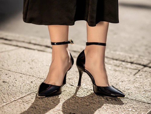 کفش نوک تیز پشت کشی ورنی خانمونه