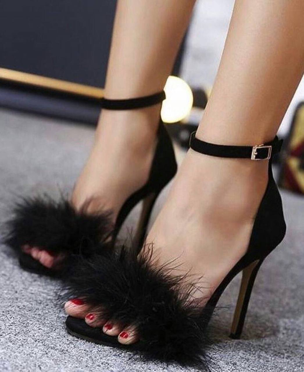 کفش خزدار بندی ساده پاشنه بلند مشکی
