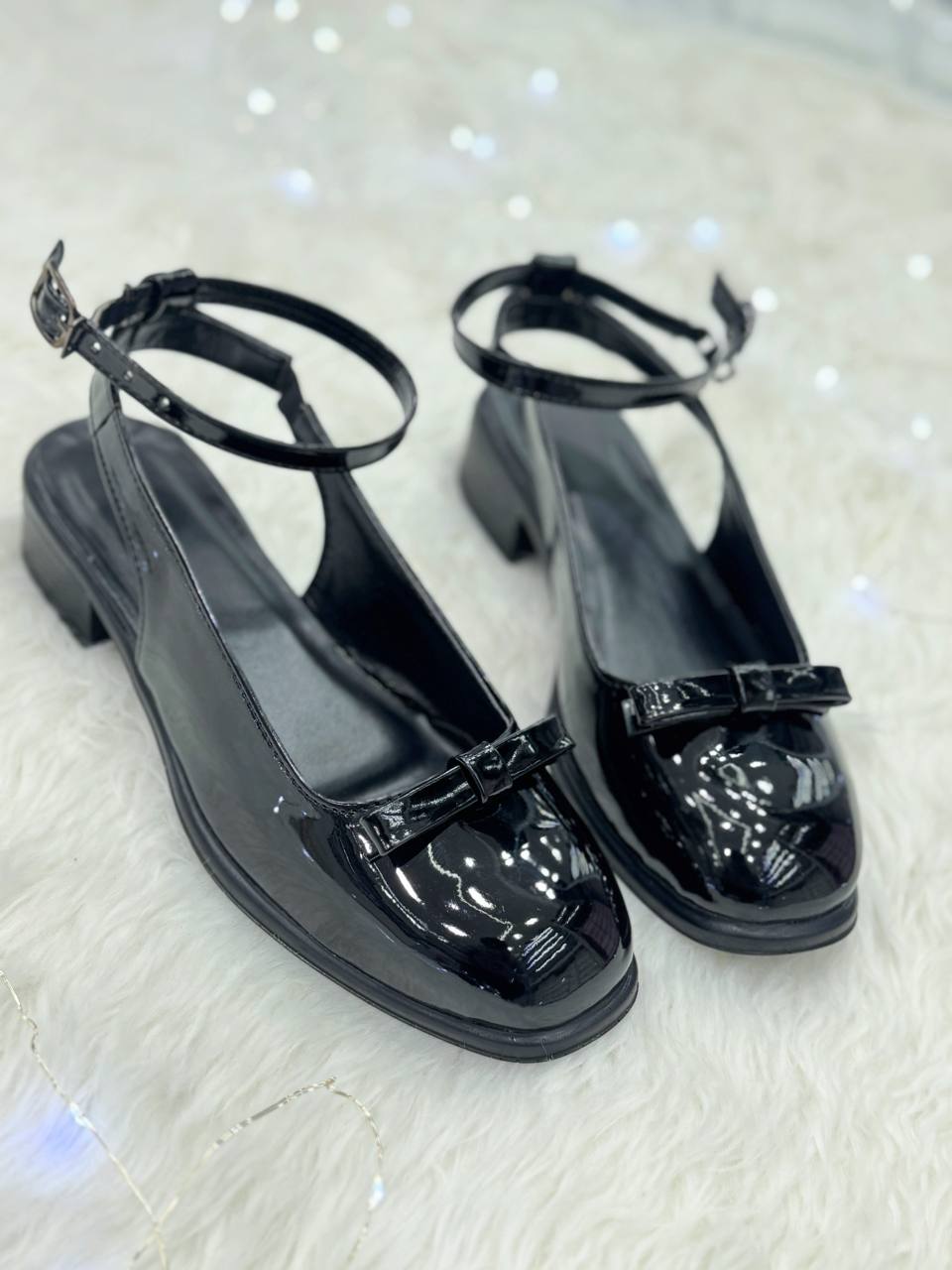 کفش ورنی مشکی عروسکی نوک تیز دورمچی