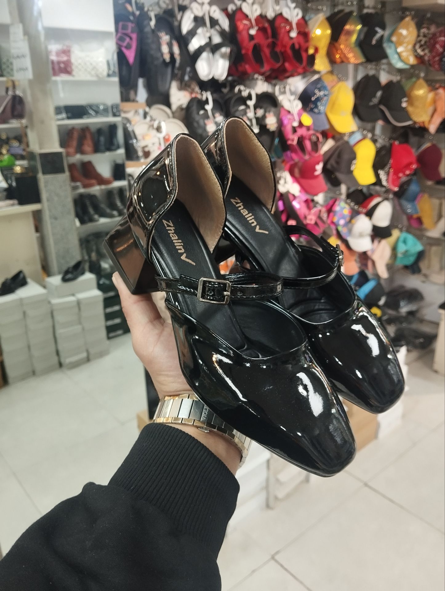 کفش نوک تیز پشت کشی ورنی خانمونه