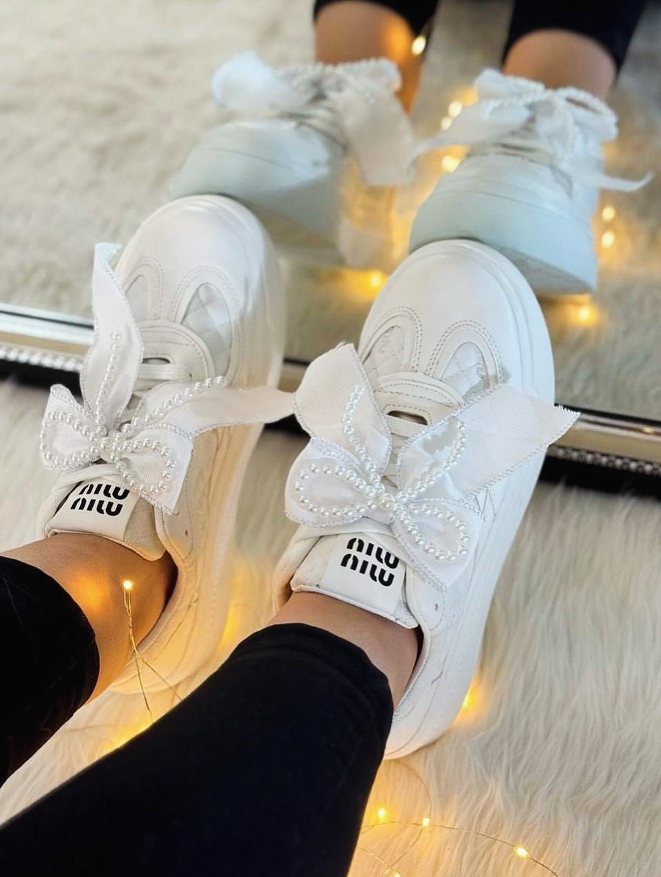 کتونی سفید لژدار ساده کتانی مرواریدی