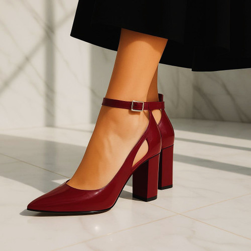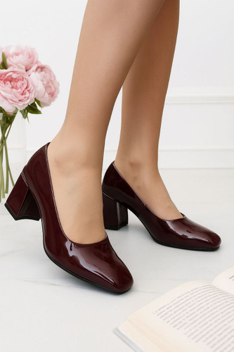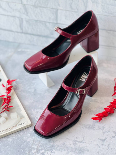 کفش پاشنه میخی زرشکی ورنی بنددار