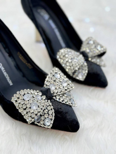کفش مجلسی پاپیون دار مخمل پاشنه بلند