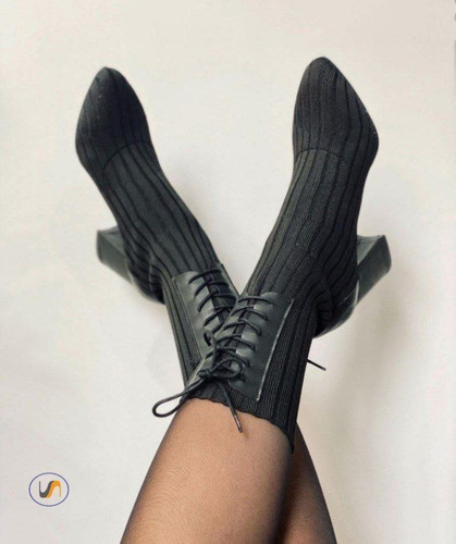 کفش خزدار بندی ساده پاشنه بلند مشکی