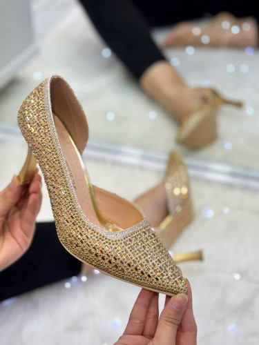 کفش پاشنه بلند پشت باز پاشنه طلایی