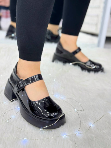 کفش ورنی مشکی عروسکی نوک تیز دورمچی