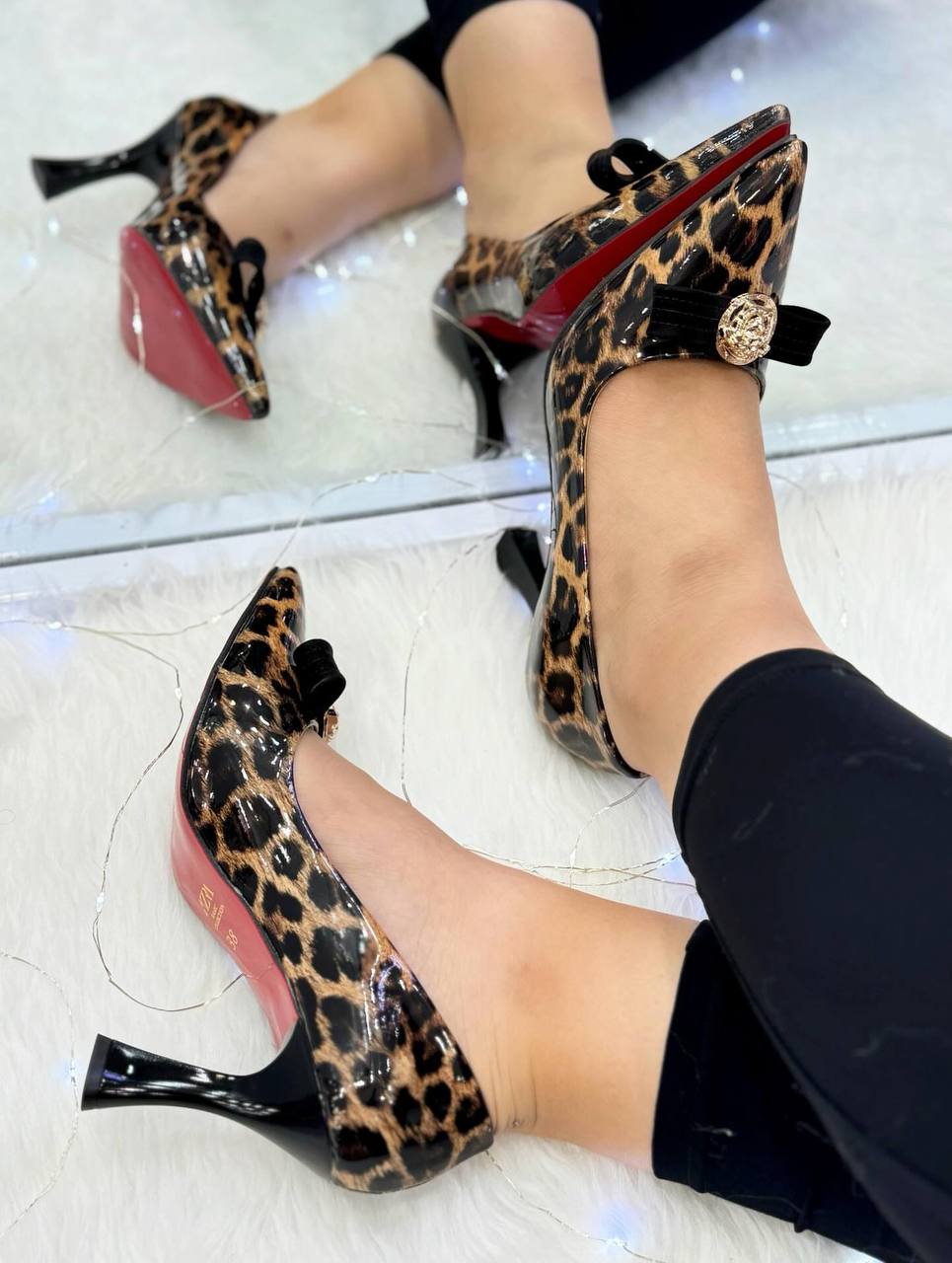 کفش مجلسی عروسکی پاپشوندار پاشنه میخی