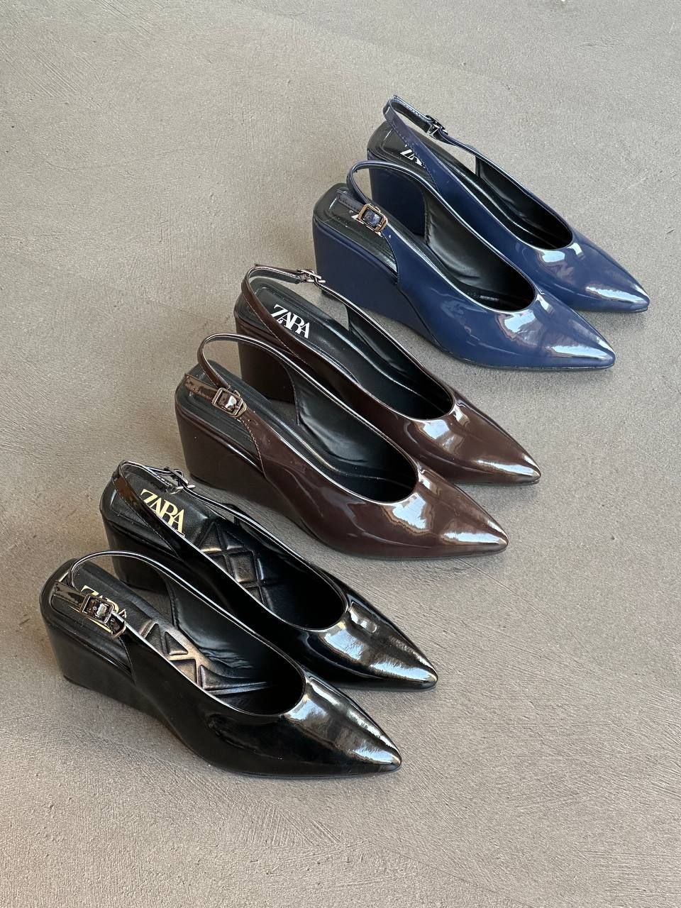 کفش نوک تیز پشت کشی ورنی خانمونه